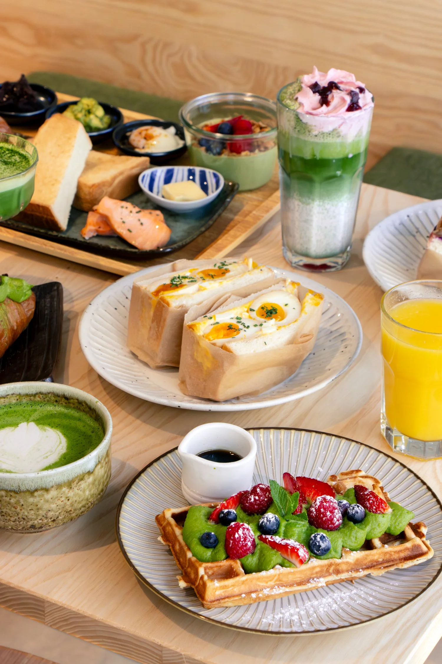 Nebst unseren japanischen Alltagsgerichten – servieren wir auch Brunch im Wafu-Stil: Eine à-la-carte-Karte, welche japanische Küche mit westlicher Brunchkultur verbindet – von Karaage Waffeln bis Matcha Cream Croissants.
